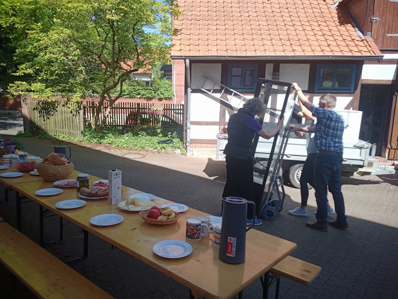Nach dem Abbau am 01. Mai 2025, fand das Helferfrühstück auf dem Pfarrhof statt mit vielen Ideen für das kommende Jahr.