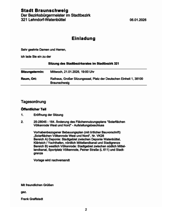 Sitzung des Stadtbezirksrates Lehndorf- Watenbüttel